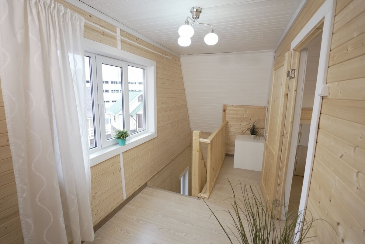 «Изначально мы с женой хотели коттедж с террасой, но в итоге решили построить дом попроще, чтобы сразу хватило денег ещё и на сантехнику с мебелью. Проект красивый — мы довольны. Живём здесь всесезонно, температуру дом держит отлично: зимой хватает одного электрического конвектора на комнату. Внутри достаточно места для всей семьи: на первом этаже у нас детская, а в мансарде — наша спальня.